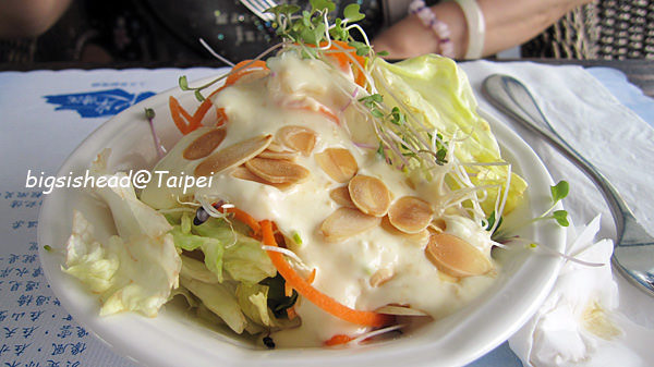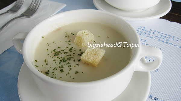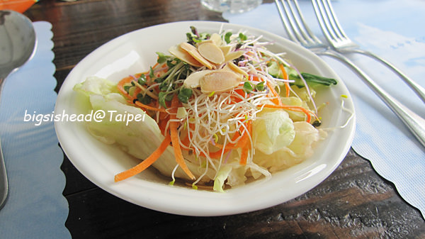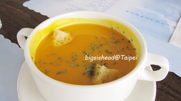 我跟婆婆點套餐(因為當時只買兩張券),所以有湯、沙拉、飲料跟甜點,老潘單點飯類。玉米濃湯跟南瓜濃湯都還可以,沒有網友說的那樣可怕。