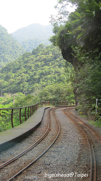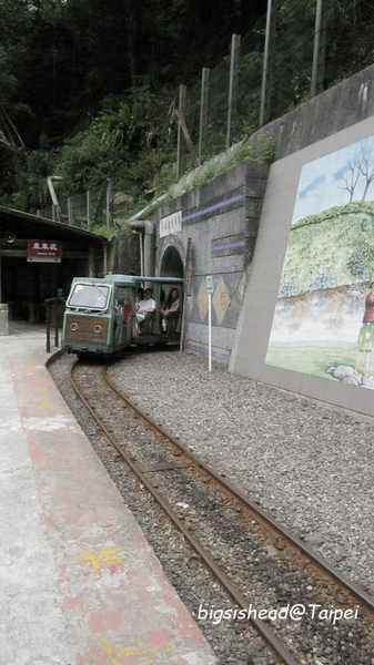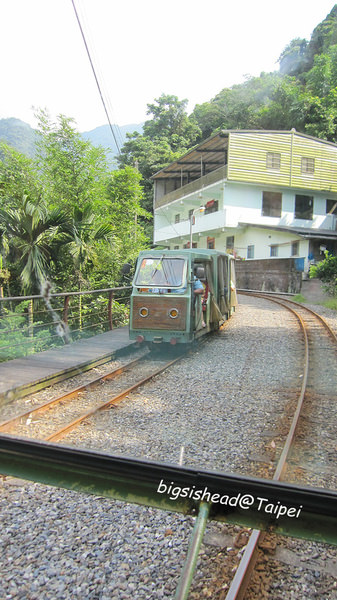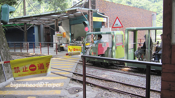 因為我們是下坡路段,所以車速明顯比剛剛上山時還要快;對向的台車正在很努力地爬坡,加油!