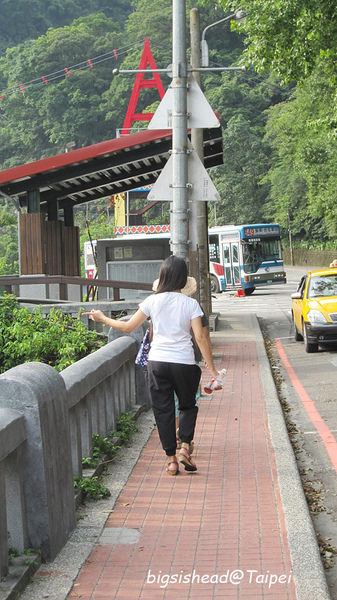 婆婆覺得碧潭太熱,她提議這裡離烏來不遠,不然去烏來好了,山上比較涼爽,順便吸收芬多精。在捷運新店站的排班計程車附近有公車站牌可以搭,搭計程車一台400元,多人共乘是可接受的價位。