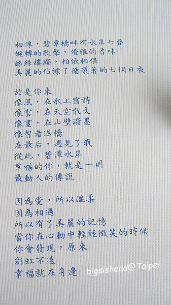 桌上放的餐墊紙,彷彿又讓人回到青春歲月情竇初開那種喜歡咬文嚼字的情書時代,但不知道是我老了還是怎麼的,現在我不會很愛這種字句~~~