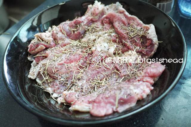 灑上適量的鹽巴及黑胡椒粉,稍微按摩醃一下,可以前一晚先做好這動作冰在冰箱,隔天就拿出來就可以直接做下個步驟。
