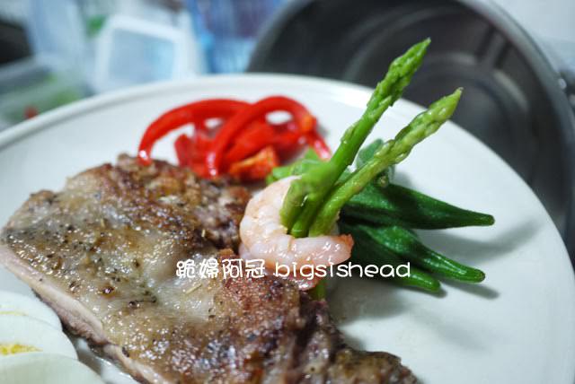 其實阿冠一開始並沒有想到要放蝦子,後來就很假掰的拿起蝦子跟蘆筍弄成這樣,覺得還蠻酷的呀!