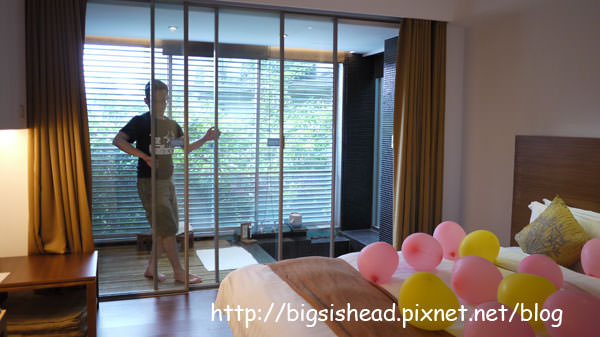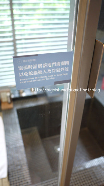 雖然旅館有告示請我們泡湯時將落地窗關起來預防蚊蟲進入及冷氣外洩,不過,我在密閉空間泡湯心跳會加速,有種快悶死的感覺,還是開起來比較舒服。