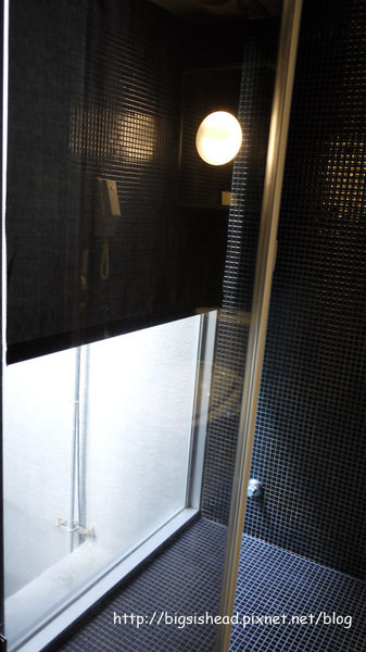 淋浴間有個落地窗,也有黑色窗簾可以下拉,想分人家看或不想分人家看請自行選擇,哈!
