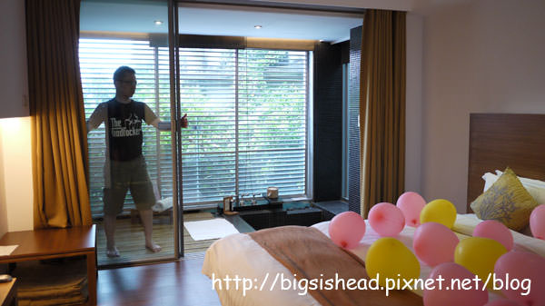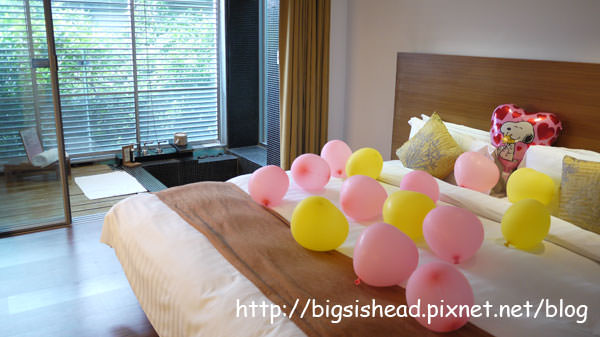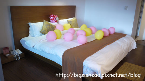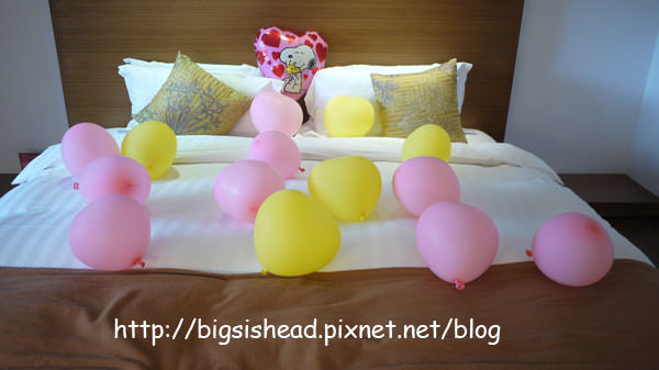 專案贈送的心型氣球,這樣是暗示我們要躺在床上把氣球爆破完才能睡嗎?哈哈!最後我們有把床頭的那個史奴比心型氣球帶回家。
