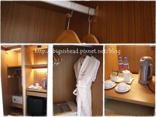 衣櫥打開後,mini bar跟小冰箱都在裡頭,衣架是不可拆設計。