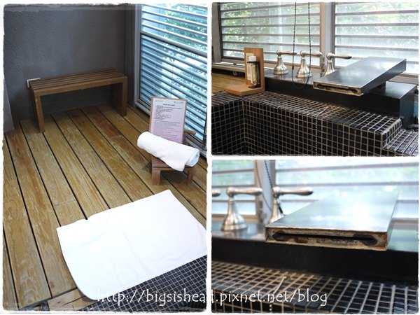 淋浴間的灑水花蓮蓬頭很特別,但我不是很常用這種的蓮蓬頭,還是習慣拿在手上能自在選擇要沖哪裡的那種蓮蓬頭;比較貼心的還有暖氣設備,,阿不然如果冬天來北投,脫光光沖澡還沒泡湯前,應該都在發抖吧!