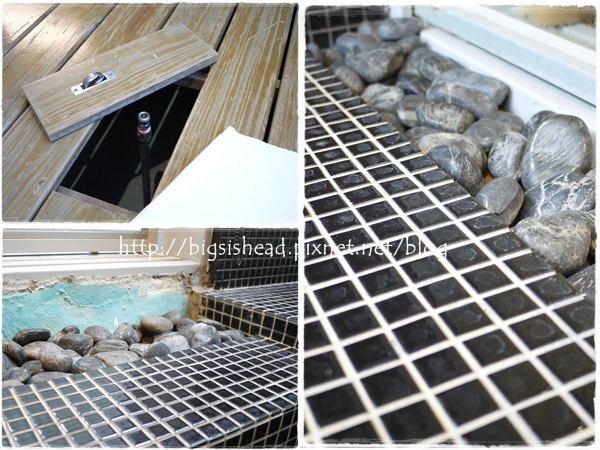 我們家老爺不只來這練舞步,看到什麼東西都會很好奇的打開來看,木板底下那個看起來像是灑水系統耶!石頭兒則是溫泉很好的造景朋友,不能忘了它。