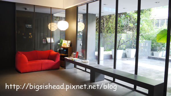來到一樓的大廳,黑白的對比色加上紅色的點綴,簡單乾淨的陳設,讓人的心情也輕鬆了起來。