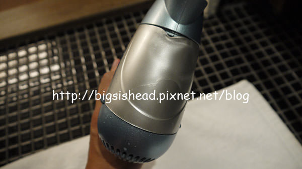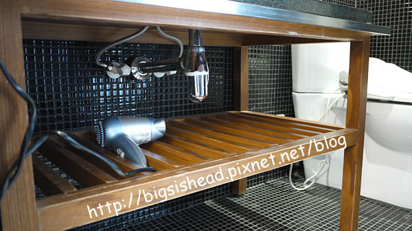 但是洗手台下方不是出現霸氣的浴櫃,而是一般的木架,放著一台吹風機。
