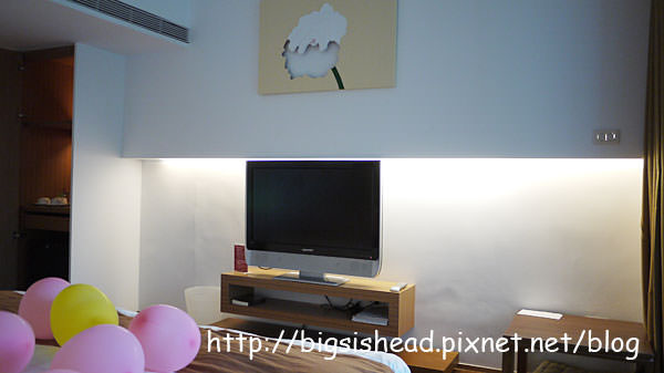 電視櫃的地方跟我家的一樣,簡約到爆,但電視能正常運轉就好,我要求不高。好處是電視可以轉方向,可以邊泡澡邊看電視喔!