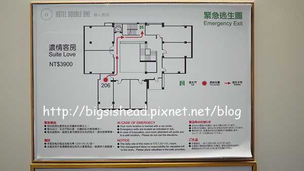 每次進房一定會看也會研究這張圖,阿冠以往的住宿文應該也都有放,但真的發生緊急事件時,我還能記清楚逃生路線才是重要的=.=