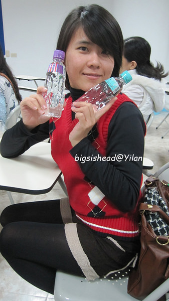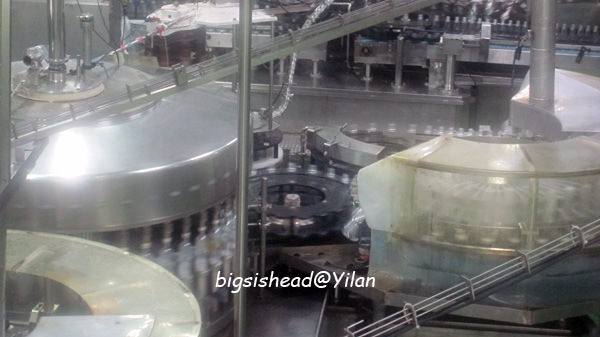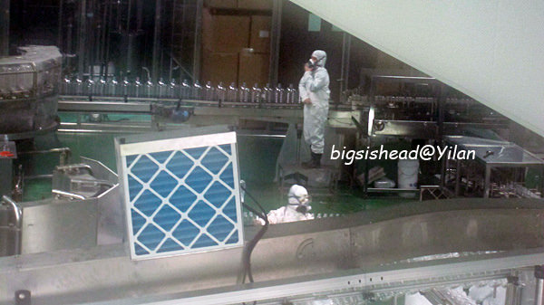 中間亮亮的那一片是品管小姐用來檢查瑕疵的工具,一發現有異狀,他們就會立刻把礦泉水打開直接倒在腳下的水桶裡,在我們參觀的這段時間裡,我親眼看到小姐倒掉了幾瓶,真的很嚴格喔!