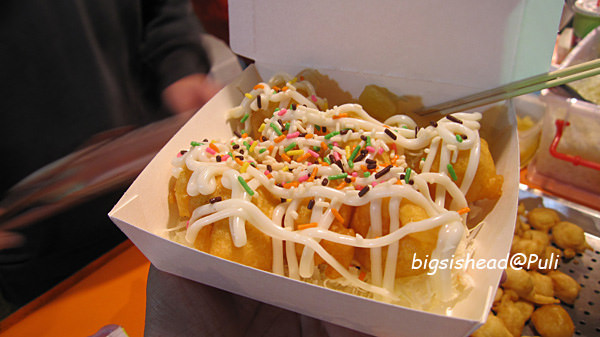 好啦!終於進行到預定的行程–逛埔里夜市~~~這裡的夜市跟台南的比較像,一週大約有兩天在這個空地集合擺攤,其他時間可能擺在別的空地,攤販就像是游牧民族固定時間移動。