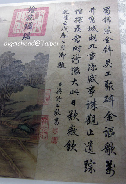 一進展場就先來一幅落落長的清朝清明上河圖,雖然星期二但因為是暑假,依舊人山人海呀!但我們想要從頭仔細看到尾,所以從右邊乖乖的排隊,一路慢慢的跟著往左推,就像是逛夜市跟著人潮往前移動一樣。可是很多人都是走馬看花,拿著相機跟著拍而已,而因為我比較矮,有比較大的空間讓路人在我頭上拍照,好多人一直拿相機在我頭上磨蹭,很不舒服。