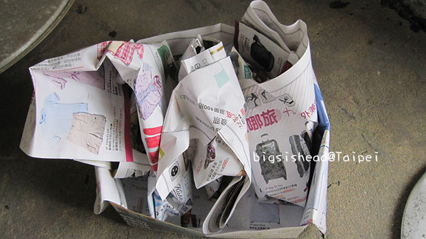 有一次要燒香的時候,才發現上次清明節拜拜的香灰,老潘沒有清掉,只好拿廣告紙把它們先包起來=.=