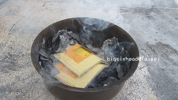 我都在頂樓燒金紙,因為湯鍋沒有打洞,所以底下無法對流,就拿著衣架幫金紙翻身,護送空氣進去。常常會有這種很燻的狀況沒關係,拿衣架翻一翻、喇一喇就ok啦!因為頂樓風很大,所以火很旺,但是我也得在頂樓奔跑追那四處飛揚的金紙,如果從直昇機空照我家的頂樓,就可以看到一個瘋女一直追著金紙喊著:不要跑~~~哈哈!