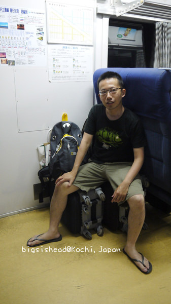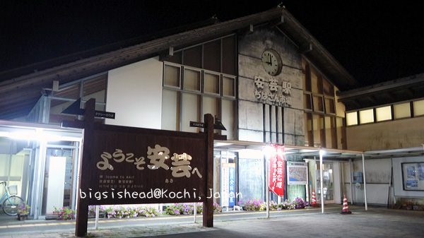 原本想說在高知換車的電車第一站會比較有位置坐,沒想到因為阿冠在月台一直流連拍高知車站廣場的夏夜祭表演,快要發車時才上車,當時根本沒位置啦!就站了一個小時到安藝,不過我們邊拍邊聊夜景,時間咻一下就過了~~~