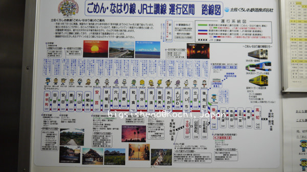 土佐黑潮鐵道後免-奈半利線每站都有一個代表的小公仔,原本土佐黑潮鐵道只在奈半利站及後免站之間行駛,跟JR合作後,可以延伸開到高知。