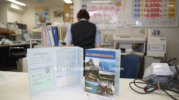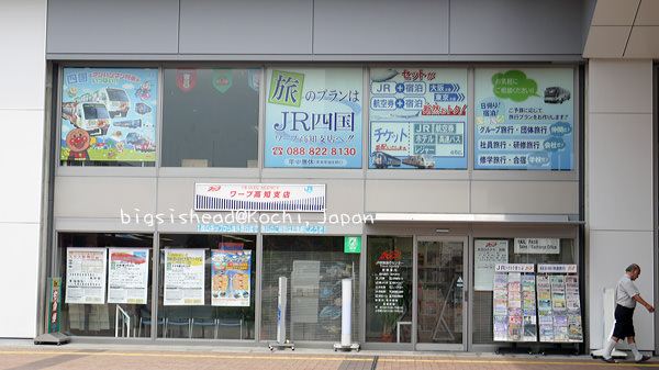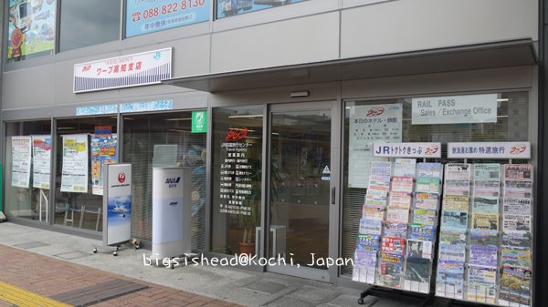 原來不是在車站裡的窗口兌換JR四國PASS啦!是要到一旁的JR四國旅遊代理中心兌換,不用進到車站,如果面向高知車站前站的話則在左側門口擺了很多DM那間就是。沒有先在台灣購買的朋友,就是要來這間來買PASS喔!