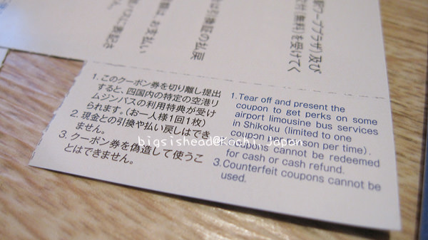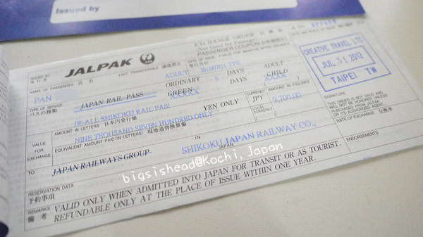 阿冠當時先在台灣經由旅行社購買JR四國PASS,會先拿到一本EXCHANGER ORDER(引換證),裡頭有兩張複寫的資料,其中一張到日本兌換可實際上路的JR四國PASS,另一張自己留存,封底的Coupon Ticket是四國四個機場(高松機場、松山機場、高知龍馬機場及德島阿波舞機場)到市區的接駁優惠卷。