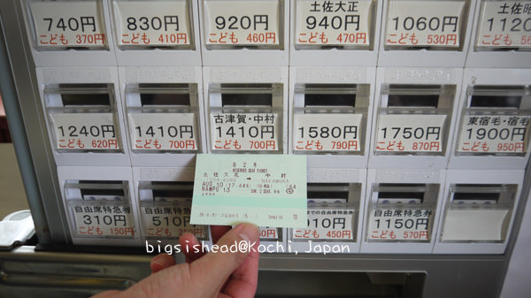 前往第四晚下榻位於安藝的飯店,但高知往安藝的路段不是JR原本的路線,是土佐的私鐵,為一般電車自由座,這段路程就沒辦法劃位,只需出示JR四國PASS即可搭乘,中村-高知,原價:2470円。(照片裡的價格跟後來在網站上查的不同,但還是以官網的為主,因為不知道這按出來是什麼的價格=.=)