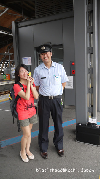就是這位列車長幫我撿的,他一開始還覺得很莫名其妙,為什麼要小紅橘子的東西,撿起來我還這麼開心,後來我們跟公仔一起合照也就明白啦!還有,這位列車長對我來說挺可口的^^