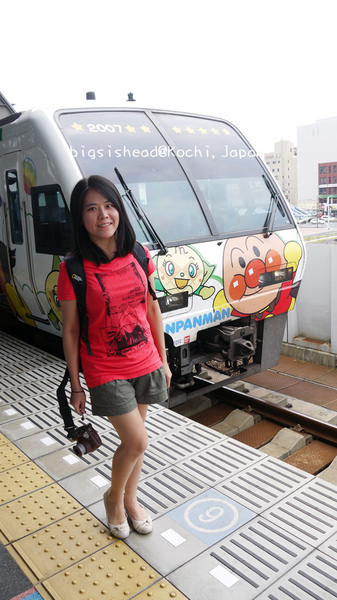 在車站外看到紅豆麵包超人列車,趕緊又轉換方向,衝到月台上去,真像小孩子跑來跑去的…