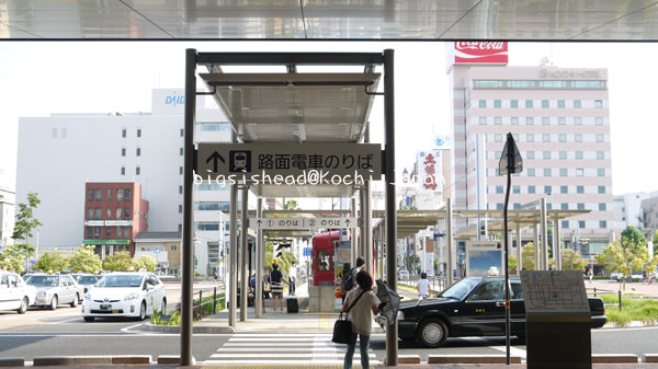 高知車站一走出大門口,過斑馬線對面就可以搭乘路面電鐵囉!當然,使用JR四國PASS於時效內可以全線免費搭乘。
