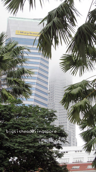 今天早上出門天氣還不錯,但是一到市區就變天,烏雲密布(你看那雲霧是大到我們以為高樓失火了=.=)。偏偏今天又是安排魚尾獅公園及遊新加坡河的行程,下雨的話真的很掃興也沒辦法好好拍照,還好,雨沒有下很久。