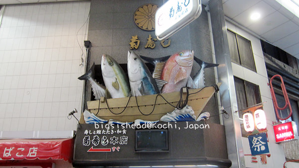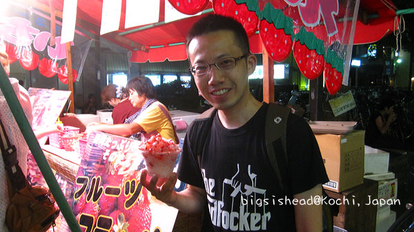 這商店外頭的巨大鮮魚造型讓我駐足拍了幾張照片,一個稍稍會講點中文的日本人問:「這很有趣嗎?」阿冠不知道怎麼回答,只說:「嗯!」然後他接著說:「拍這個做什麼?」阿冠:「做紀念。」後來可能沒詞彙可以表達他想問的問題了,就禮貌性的邊走邊揮手說他待過中國,會一點點中文,阿冠真的不知道要接什麼=.=