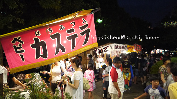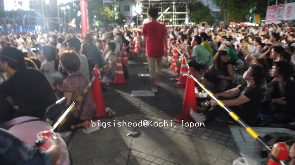 每年8/9-8/12在四國高知舉辦的夏夜祭,8/9前夜祭先由去年得獎的團體在中央公園表演做個暖場以迎接接下來三天熱鬧的盛會,鏡川河畔也有高達4000發的煙火秀,老潘跟阿冠在中央公園與鏡川河畔兩個地點猶豫了一下後,最後由中央公園勝出,我們覺得這次千里迢迢來就是為了夏夜祭而來,煙火秀世界各地都能看到,但是這種祭典舞蹈是名產,要把握機會!台灣的煙火秀也是嚇嚇叫的呀!