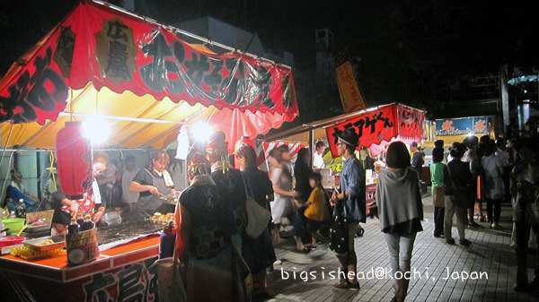 前夜祭那天,如果要很行軍的行程,可以17:00先到中央公園看祈願祭與前夜祭的表演,大約19:45左右前往鏡川河畔看煙火秀,大約可以觀賞一個小時的煙火,然後再漫步回高知橋旁的屋台餃子老店吃餃子(沒吃到老店的餃子,是我此程的一大遺憾呀!)。