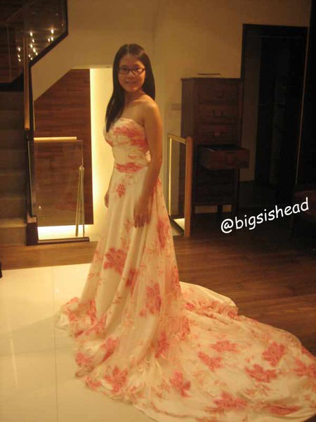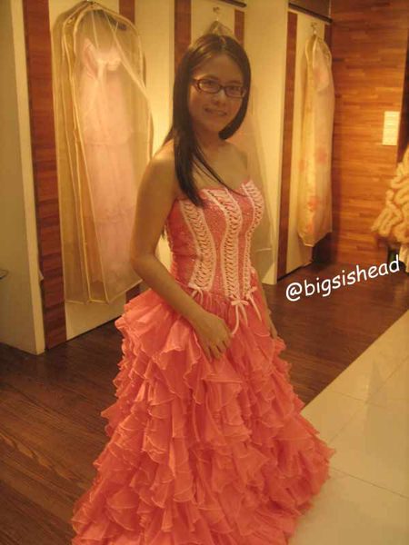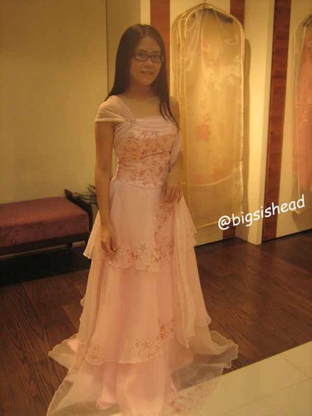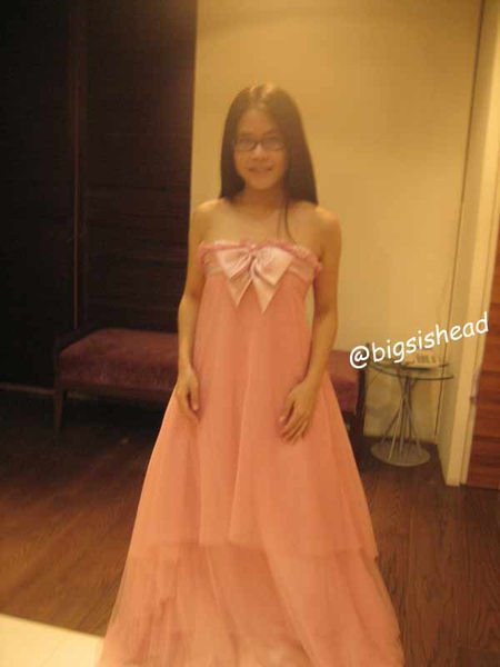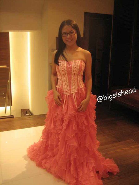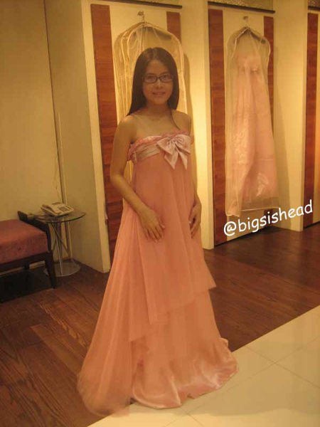 我一開始超排斥沒有腰身的娃娃裝禮服,因為很容易會覺得胖胖的好像懷孕,可是穿起來之後的感覺還不賴耶!覺得有把身高拉高,看起來效果其實還不錯,而且粉紅色不會太粉,還不錯!