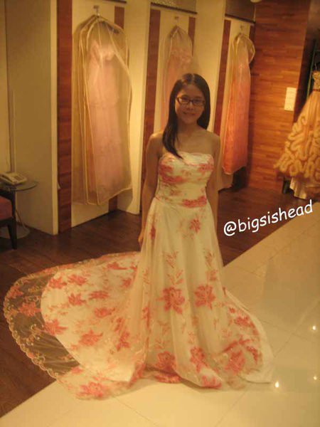 這件其實有人說它是白紗有人說它是禮服,想當白紗可以在裡頭加上襯裙。不知道是因為它目前尺寸太大還是怎樣,看起來我會變胖,所以也不喜歡這件。