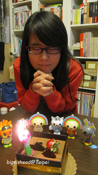幫老潘開門之後,阿冠繼續回工作桌寫東西,老潘鬼鬼祟祟跑到廚房不知在”必瞎瞇蚊子“,不一會兒關燈叫我到客廳,原來有一群open家族來幫阿冠慶生呢!