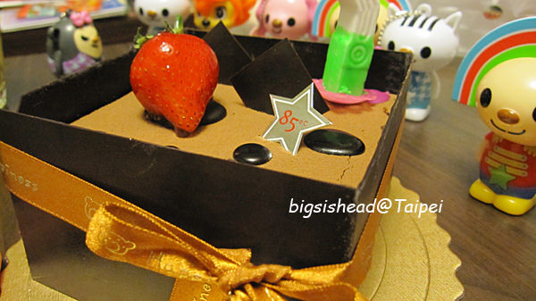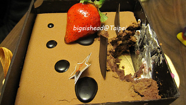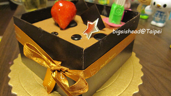 老潘說他選這款蛋糕是因為外面四片巧克力做成假盒子很特別