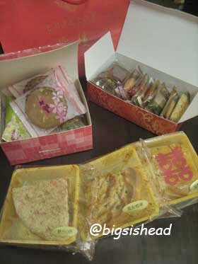 這是當時跟冠爸及冠媽在台南看喜餅拿的試吃包,因為台南的御倉屋、皇樓跟依莎貝爾在同一家門市,所以我就一塊拍了。