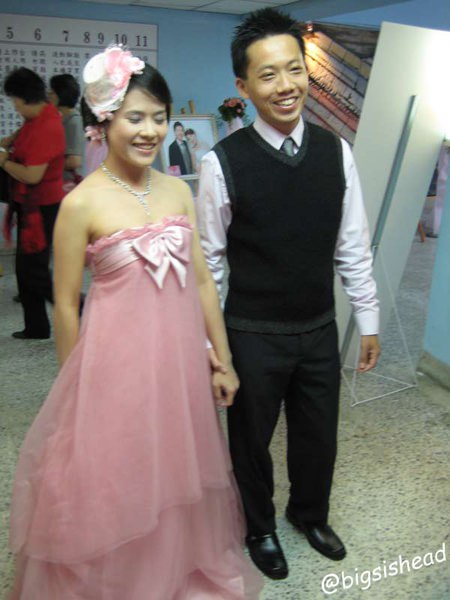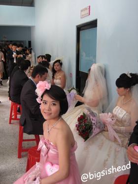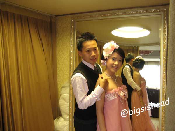 這只是走道,不是房間,沒有冷氣,很熱,好險我今天的禮服很輕巧,如果我也穿白紗,那應該整個臉會糊得跟鬼一樣吧!