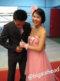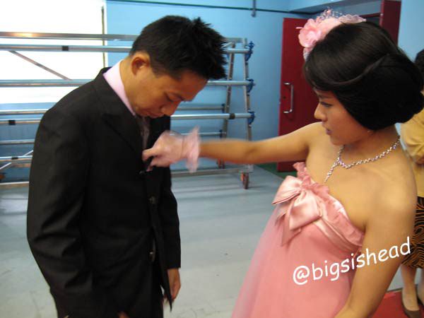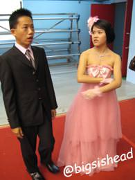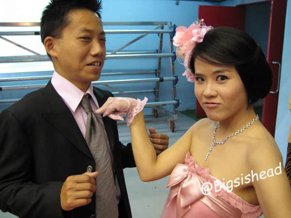 昨天晚上在家練習了一陣子,今天穿上禮服正式預演一次,希望等一下會有鏡頭注意到我們,我是心機重的傢伙,呵呵!