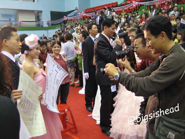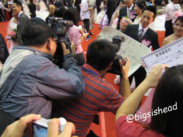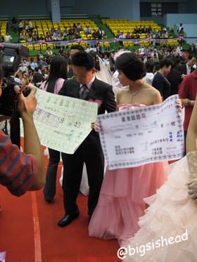 因為我們發現記者手上有名單,但今天有3對新人沒有參加,所以地上的號碼都亂掉了,想要趕緊叫中國時報的記者跟他們確認。