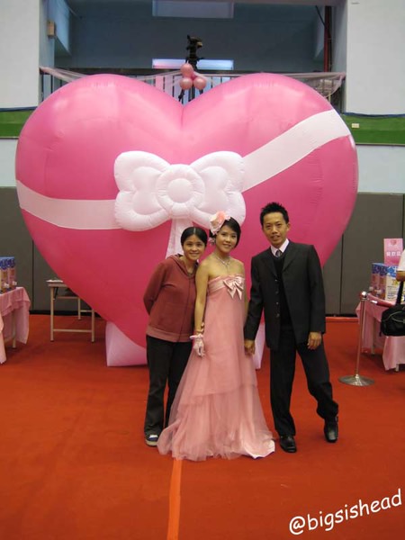 大家都搶著要跟粉紅大愛心合照呢!