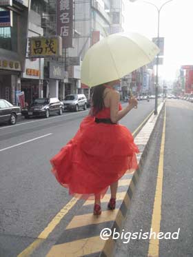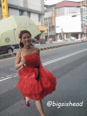 其實我不只在大馬路上走,我是穿著大紅色的婚紗,在幾家我很懷念、很喜歡吃的台南著名小吃攤拍照,敬請期待吧!