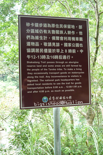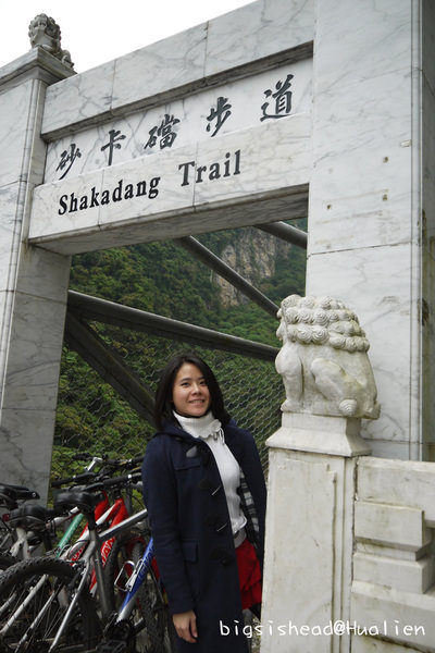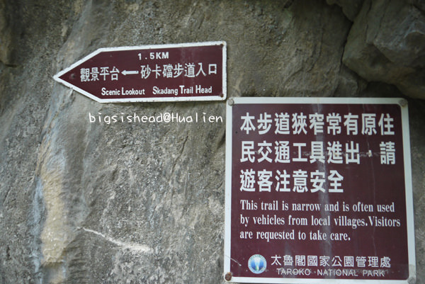 第五站–砂卡礑步道(舊名:神秘谷步道,民國90年改回泰雅族的慣稱:sgadan,意謂:臼齒。),一出砂卡礑隧道右邊就看到了!