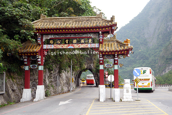這個東西橫貫公路牌樓現在只有單向通行,因為遊覽車常常把牌樓的腳給撞壞,已經維修好多次,所以後來就分向行駛,當然,拓寬之後,也可以紓解交通上的壓力。