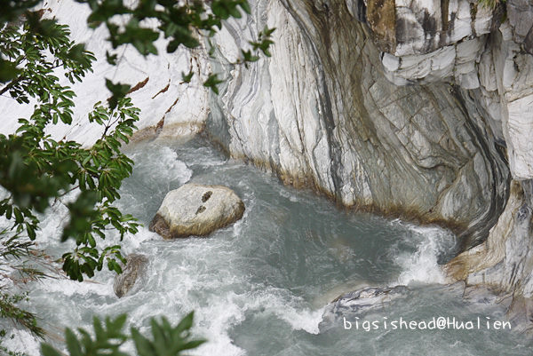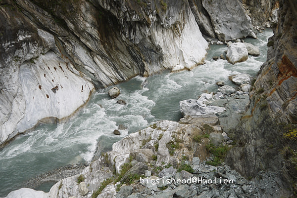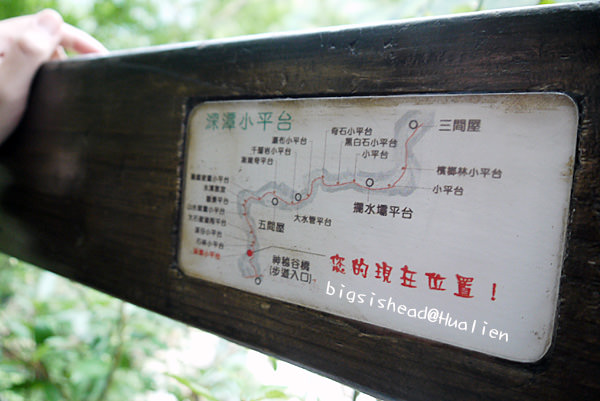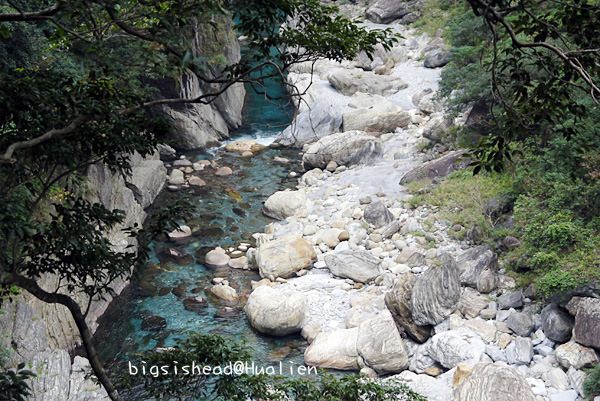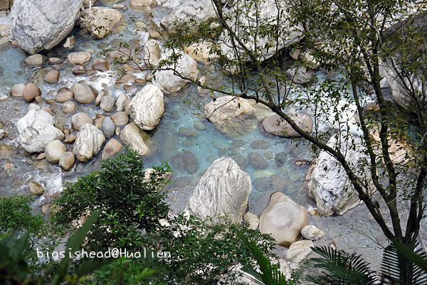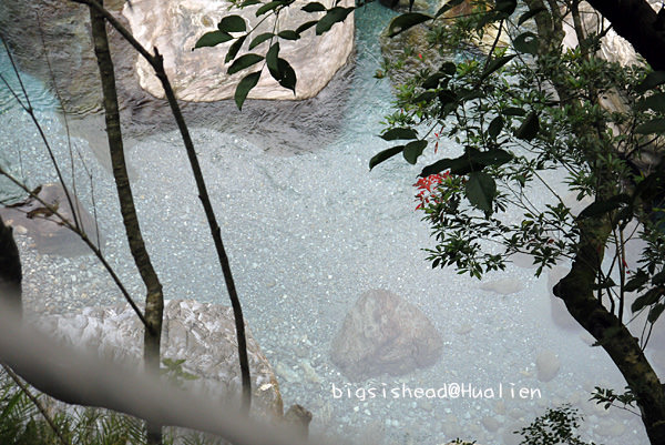 這次砂卡礑步道對我們最大的收穫是讓我這輩子第一次真的看到什麼叫做湖水綠,以前知道湖水綠只能在麥當當可樂紀念杯的顏色挑選看板上看到,說真的我還從未真的看過湖水綠,因為水質若不乾淨,也無法真的看到湖水綠呀!砂卡礑步道溪水的顏色真的很美,可惜我的相機無法拍回我眼睛所看到的美麗,下游這邊還無法接近溪水,再加上天氣不佳,拍起來的顏色都灰灰的。