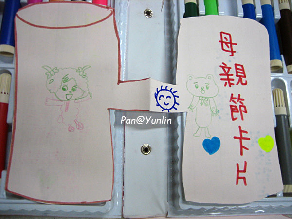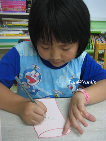 這個小朋友是班上最會畫畫的,所以大家都偷偷跑來請她幫忙畫。