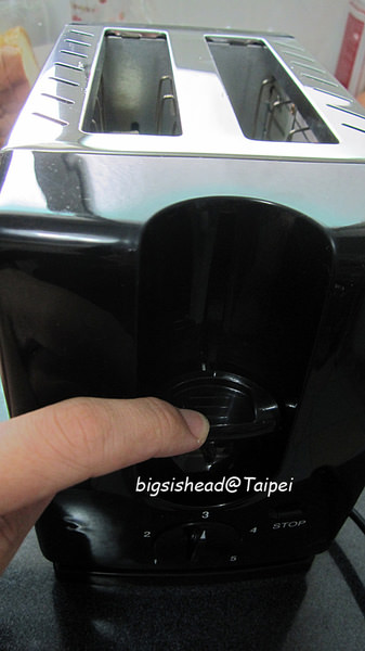 因為阿冠喜歡吃酥脆,但又怕一開始就燒成黑炭,所以只按了3。很快的,土司開始變乾縮水。