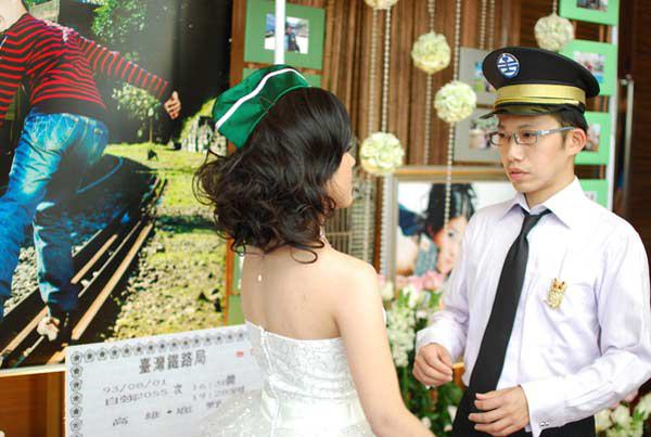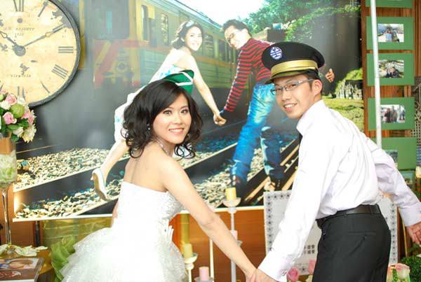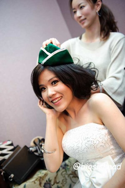 我兩年前拍婚紗照的時候,當時不流行這小帽子玩意兒,所以相本裡頭都沒出現過,只好婚禮的時候戴來玩一玩。