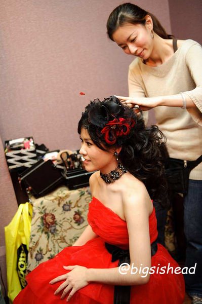 我阿母主要是由新秘的助理來幫忙打理造型,雖然她都一直說:醜死了,不要拍。但被我訓練好幾年及跟她說:請攝影師要錢的耶!當然要多拍幾張。現在終於會乖乖看鏡頭,雖然嘴巴偶爾還是會給他唸一下。